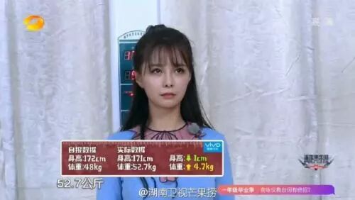不过在《真正男子汉》节目里也公布过她的真实体重:52.7kg,所以肉肉还是蛮匀称的~