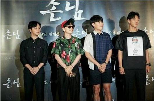 中间两位大家都认识啦,88里面的“东龙”李东辉“狗焕”柳俊烈,最右是通过《无理的前进》被大家认识的志洙。好基友就是连电影试映会都要一起(看我单身狗白眼)。柳俊烈的直播上邀请卞耀汉做了电话连线。