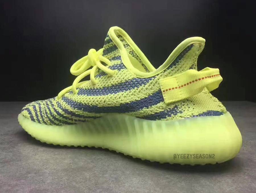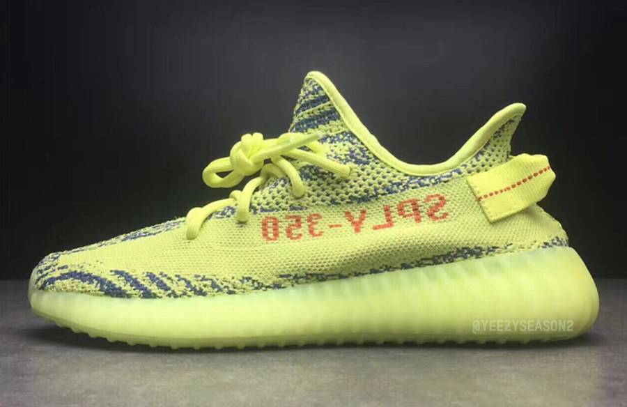 Yeezy Boost 350 V2 “Semi Frozen” 采用黄色装扮为主基调,搭配 Yeezy Boost 350 V2 极具辨识度的斑马纹理呈现。