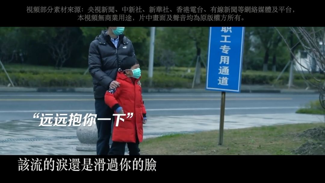 镜头下,则是一位医护人员母亲,隔着马路,远远地跟孩子抱一下。