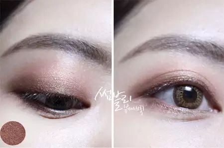 Step 4:用带珠光的砖红色均匀涂抹于眼皮,并有深浅的层次感。
