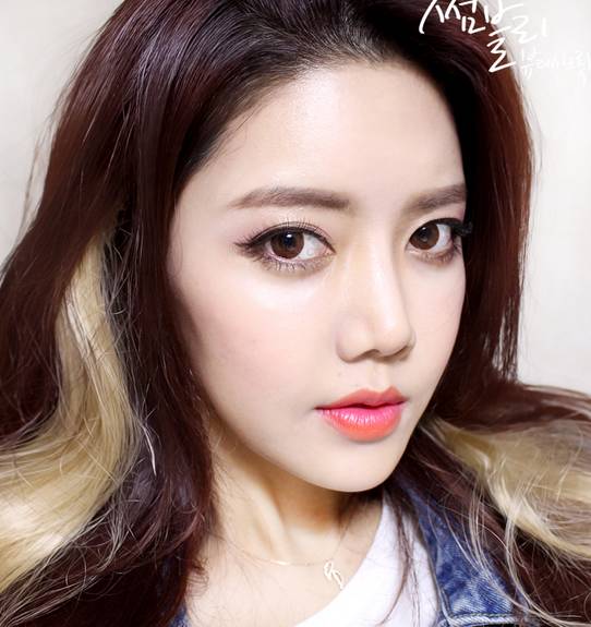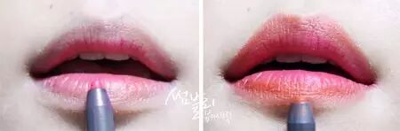 Step 10:最后用粉、橘两色分别涂抹于唇部内、外,K Beauty潮妆就有啦~