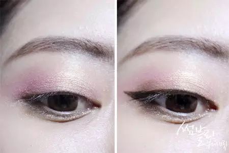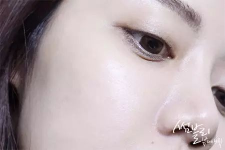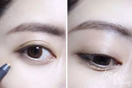 Step 2:再用米色带闪粉的眼影笔,在眼睑及眼皮上做打底,以提高眼妆的明亮度。