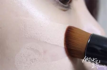 Step 1:先是通过粉刷沾取粉底均匀涂于面部,底妆无暇透亮是完美妆容的关键。