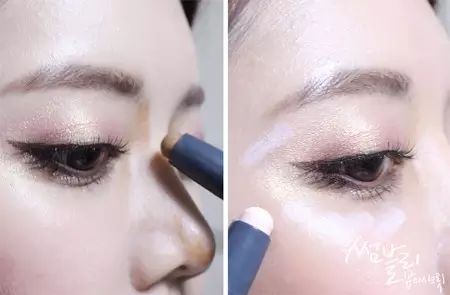 Step 9:在眉头、鼻子打上阴影,眼周打上高光,全面打造立体V脸。