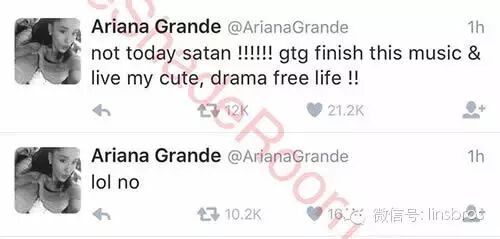 于是,我们看到Ariana紧张的要命,在推特上声明:Lol no,她不想卷入JB的感情生活。Ha!