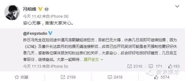 今天他特意发微博澄清,受伤是真的,但只是轻微扭伤,目前已无大碍。