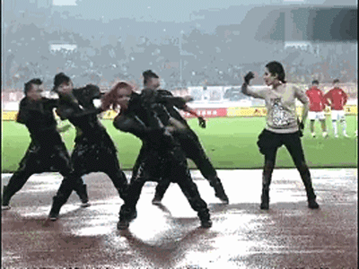 就算没有人关注自己依然为观众奉献精彩表演,舞步唱歌完全不含糊。
