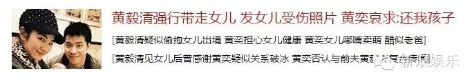 而更加令人目瞪口呆的是,黄奕和黄毅清的离婚夺女闹剧就开始了,每隔一段时间就会撕一次,猛料倍出,狗血程度秒杀八点档。