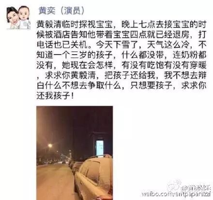 这厢黄奕立马坐不住了,昨晚就在朋友圈发文求助,哀求:“只想要孩子,求求你还我孩子!”