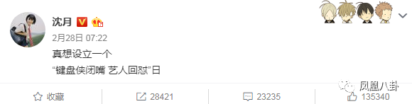 只能说沈月这个生日过的可是腥风血雨,大概是实在气不过,她就用自己大号说:“真想设立一个‘键盘侠闭嘴 艺人回怼’日。”