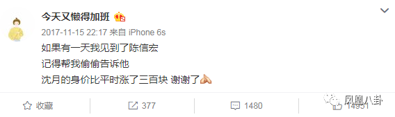 事情是这样滴!沈月在微博有一个小号,前段时间被大家曝光,内容大多都是记录一下自己的日常或者分享一些段子发发牢骚。
