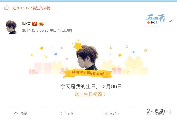 而2月27日,正好是她的生日,她还幸运滴收到了来自五月天的祝福↓