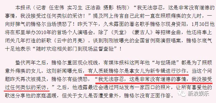 早前还被质疑拿女儿炒作,腾格尔当场就怒了。