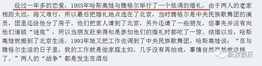 两年后,腾格尔到阿盟演出,又认识了在阿盟歌舞团当舞蹈演员的洪格尔·珠拉,据说她小腾格尔18岁...