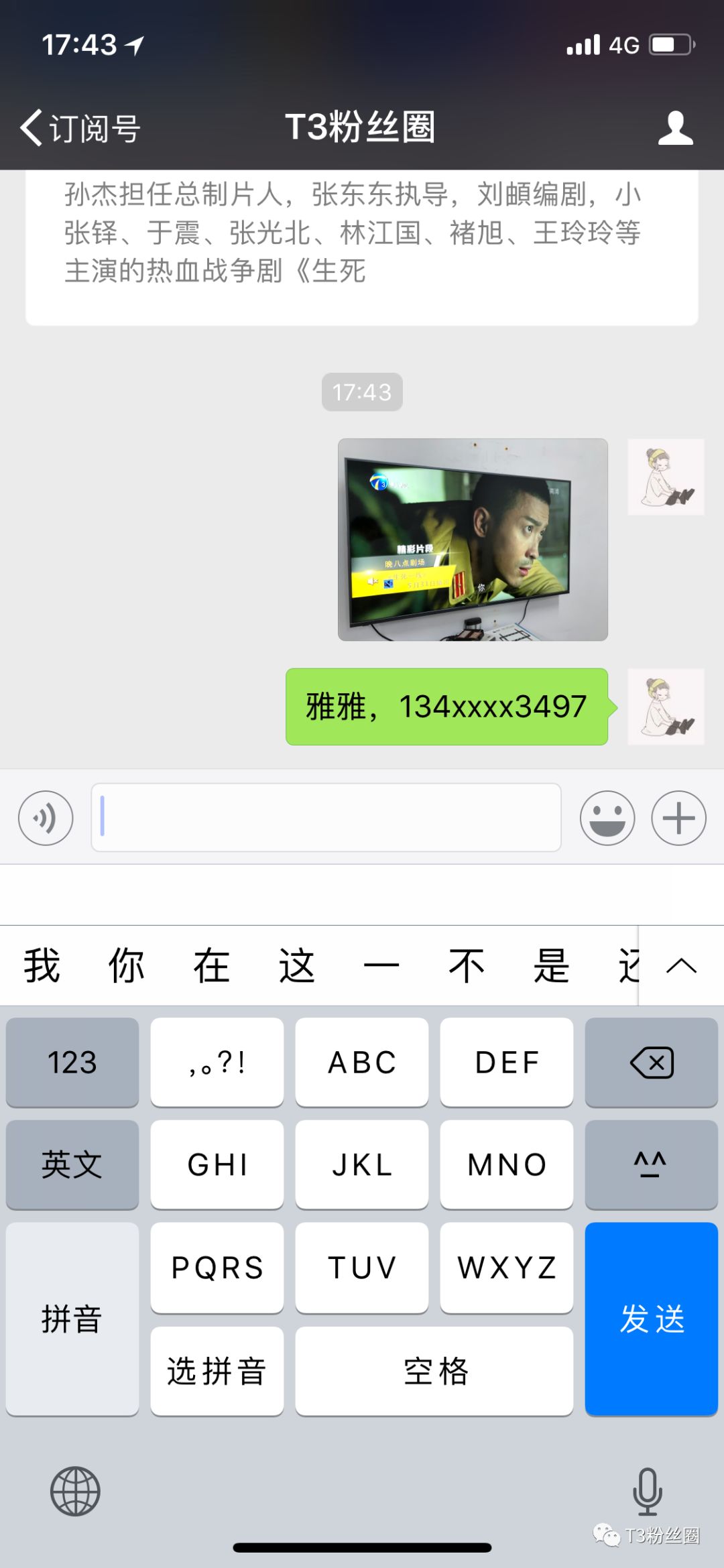 3.将电视剧照片、姓名和手机号发送至微信公众号即算报名成功;