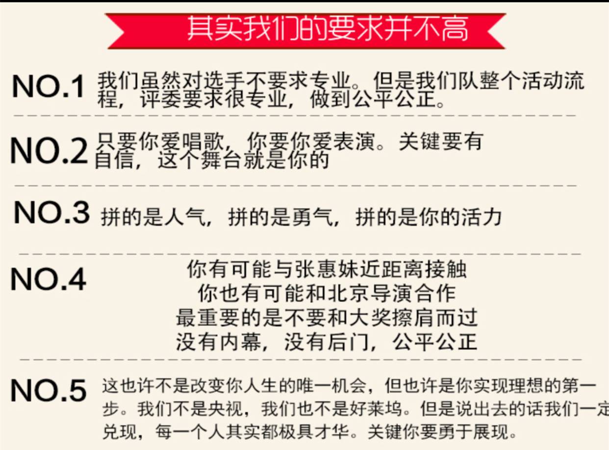 5月14日 张惠妹徐州演唱会 【因爱而存在】 徐州金鹰人民广场店 大型音乐选秀海选赛 报名开始啦! 5月6日-5月13日 徐州金鹰人民广场店 微信公众平台线上报名 长按上方二维码 快速关注 发送‘张惠妹+姓名+联系方式’ 均可免费参与5.14位于金鹰二店的海选 并有机会赢取与张惠妹同台表演互动资格。 如果你有音乐梦想 想和偶像0距离接触 那就赶快报名吧!