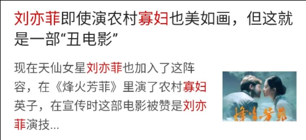 刘亦菲后来尝试演过寡妇、残疾人、狐妖,但仍在漩涡里打转。