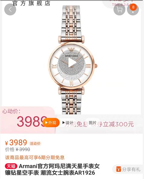 毕竟满天星和幸福摩天轮号称阿玛尼性价比之王,款式经典、不挑人,相当抢手,不论专柜还是官网,活动最低价也要接近4000元。