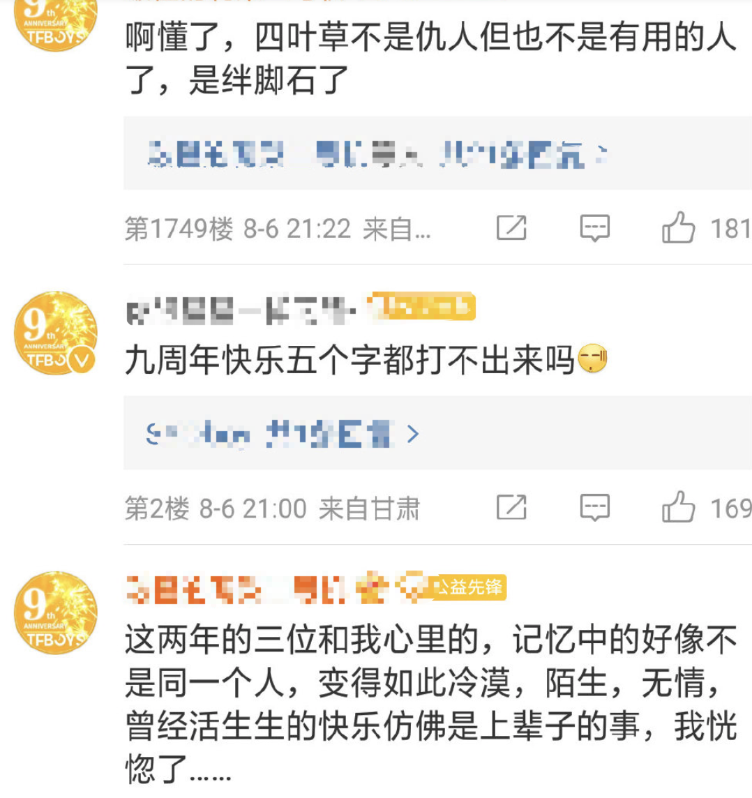 这一次,TFBOYS太令团粉失望了! 偶像说 内地男星 2022-08-08 08:00:25 528 创作不易,用心坚持,欢迎请BaGua喝几杯爱心咖啡!打赏并支持本文 打赏并删除本文 TFBOYS十周年开始倒数了。相信很多粉丝都没有想到,九周年出道日竟然是这种情况,以往还会各自录制一点祝福,如今连出镜都没有了,粉丝的一腔热血付诸东流的感觉,着实有点难过。记得第一次看见你们,是在快本,在那个人还不是很多的夏天。源儿说:“大家好,我是组合里最萌,最阳光,最可爱的王源!”大哥说:“我是最酷最帅的王俊凯!”千玺说:“我是组合里面年龄最小、个子最小但是舞蹈最棒的易烊千玺!” 你们说:“大家好,我们是TFBOYS!”而这句话,却已经很久没有听过了。今年夏天,粉丝们为了弥补这么久以来的想念,举办了线下演唱会,看到那么多粉丝合唱,感觉好像回到了那些年追星的日子,本以来这样的举动会让TFBOYS引起注意,没想到最后粉丝只是感动了自己。如今,确实找不到更好的理由来解释三人为什么不发九周年纪念博了。想了很久很久,还是想说,是不是前方的路过于平坦,以至于三人都忘了来时路有多么艰难,如果不是,他们为什么不回头看看粉丝们,如果可以,只剩下最后一年了,请回头看看来时的路吧,为故事画上一个完美的句号,我们的故事结尾不能是be。 创作不易,用心坚持,欢迎请BaGua喝几杯爱心咖啡!打赏并支持本文 打赏并删除本文 感谢您的支持鼓励,我会继续努力的!文章地址:用户邮箱:打赏金额:USDT 请输入数字点击”去打赏“,即可进行打赏支持本文章哦 tfboys About the Author 偶像说 功能介绍:这里有很多个明星,但是我们最爱讲TFBOYS的事情,有关三小只的小秘密你想听嘛? Related Posts 黄子韬徐艺洋餐厅约会被偶遇,戴情侣帽秀恩爱,却互不搭理显冷漠 2023-02-15 22:40:08 伊能静带7岁女儿小米粒回台北探亲,网友:比大s识大体! 2023-02-03 23:09:13 网传TFBOYS十周年演唱会完成备案,时间跟李飞说的对上了! 2023-02-02 23:54:30 蔡少芬深夜陪老公玩穿越机,炫耀:我男人没有我不成!夫妻合照好甜 2023-01-06 23:31:16 黄景瑜工作室告黑胜诉,历时已久,终于守得云开见月明 2023-01-06 23:31:16 发表评论