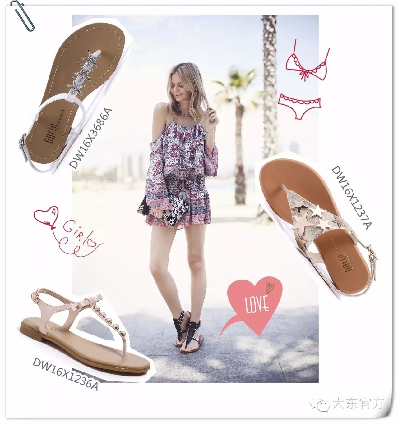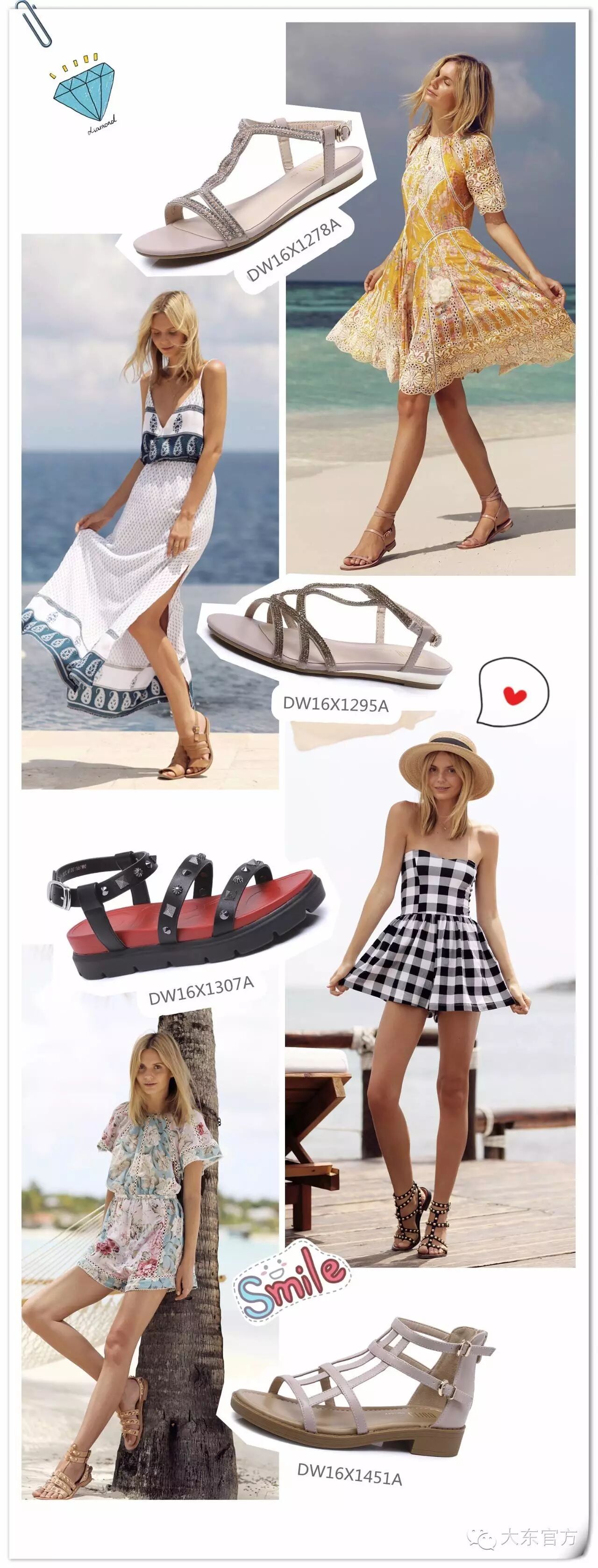 连衣裙是去海边的首选装束,裙角飞舞,浪漫又唯美,魅力值绝对MAX,当然除了连衣裙也可以选择漂亮的印花连体套装。搭配长裙可以选择罗马凉鞋,不同风格的裙子选择不同风格的鞋子,带闪钻和珍珠的凉鞋适合温柔甜美的裙子,带铆钉的鞋子就挑选个性潮感的裙子。