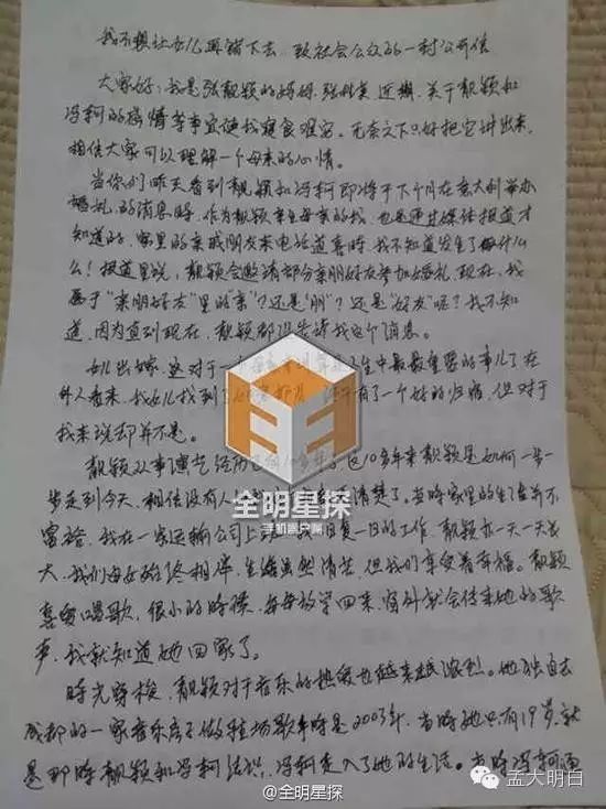 大家好:我是张靓颖的妈妈张桂英,多年来有件很重要的事一直郁积在我的心里,令我寝食难安,这件事就是靓颖和冯轲的感情问题。现在我面临艰难的抉择,无奈之下只好把它讲出来,请大家帮我评评理、拿个主意,相信大家可以理解一个母亲的心情。