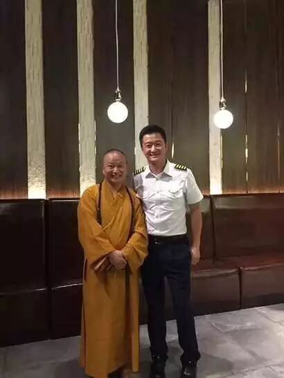 《战狼2》7月22日在成都举行发布会。图为吴京与什邡罗汉寺方丈素全法师合影