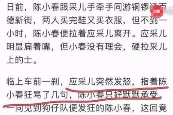 据悉在这之前陈小春和应采儿牵手同游,被发现两人中途发生争执,对于应采儿的狂骂,陈小春默默承受一言不发。果然大哥的女人不好惹啊。