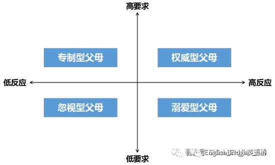针对家长的教养方式,美国心理学家鲍姆令德(Baumrind)提出了两个维度:一个维度是要求,指父母对孩子的管束、监控程度;另一个维度是反应,简单地说,就是对孩子的关爱、支持、鼓励、赞赏的程度。