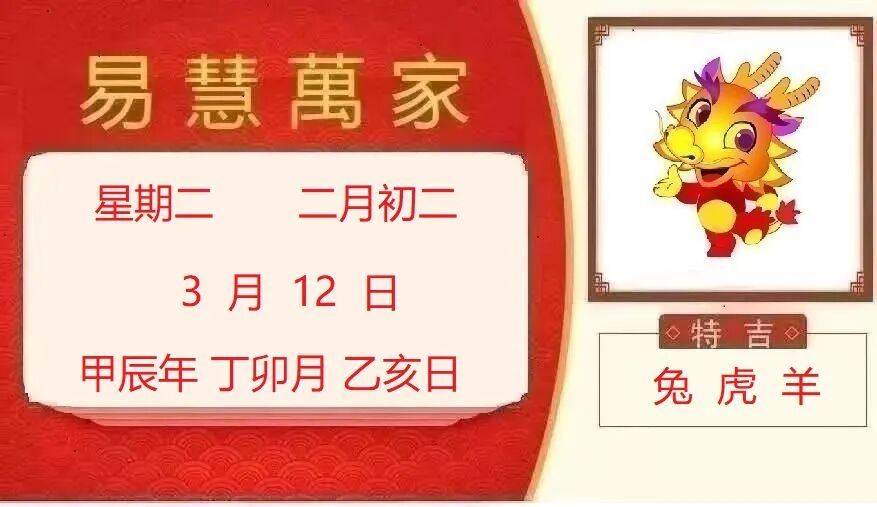 2024年3月12日,星期二,农历二月初三 (甲辰年丁卯月乙亥日),法定工作日。今天植树节,水是生命之源,树是水的卫士,尽我们所能多植些树吧。今天孙中山逝世纪念日,将中山先生的思想和精神永续传承,发扬光大。