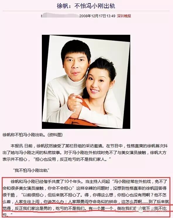 小妹无法过多解释徐帆和冯小刚的感情,但从种种徐帆的表现来看,源自于她真的是把冯小刚当成命来爱,才有了这种能够“护犊子”的心态。