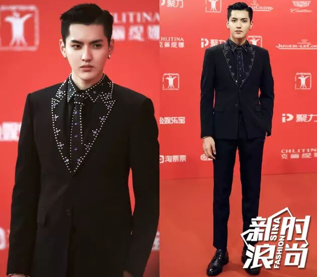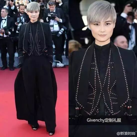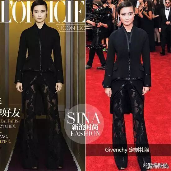 在去年的上海国际电影节上,领口金属细节装饰的黑色套装来自于Givenchy。