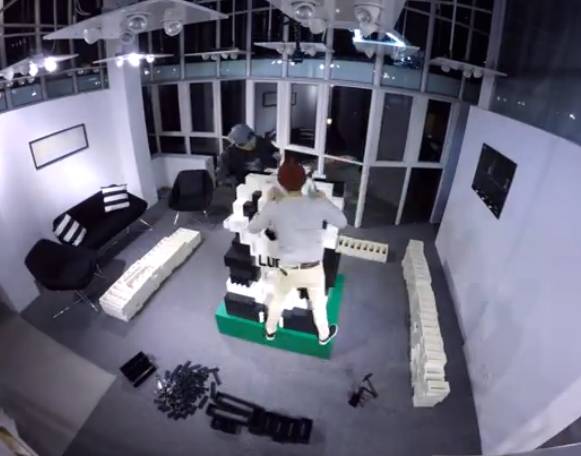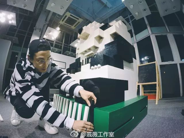 乐高大家都玩过的哈,一开始就是这种很小的一块块的,光是把一块块的乐高搭成一个个长方形,李承铉就用了十几天的时间