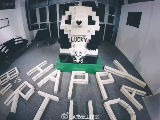 搭建到一半,熊猫肚子上还有lucky的名字超级用心