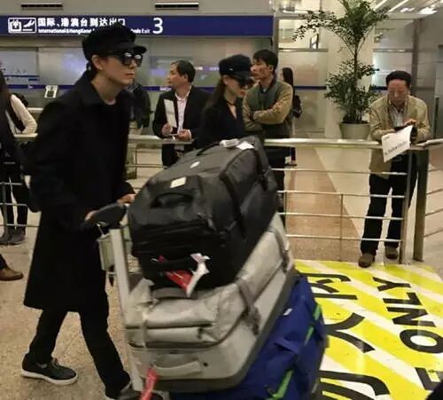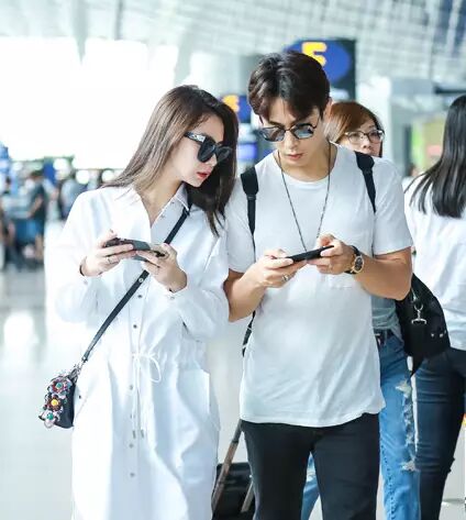 一起搭飞机,还穿情侣装戴情侣帽,连墨镜都是情侣婶的