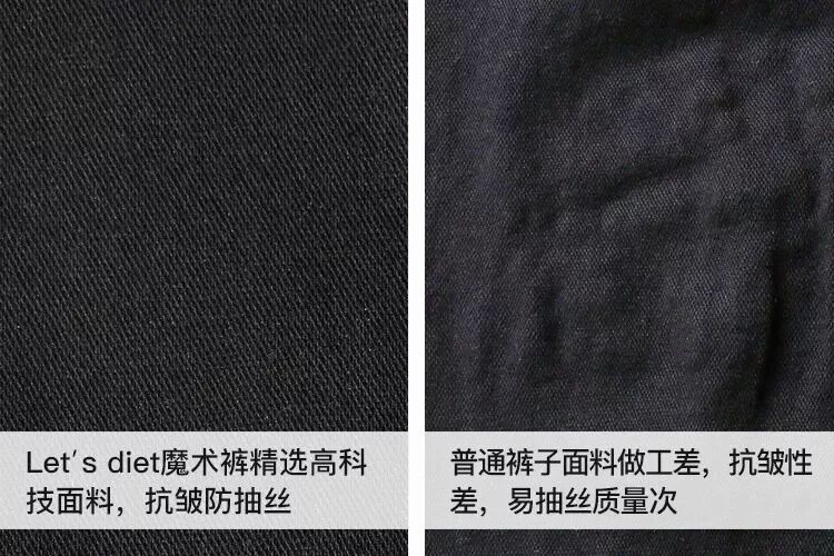 这是因为魔术裤使用了美国进口杜邦莱卡面料,弹力是普通面料的1.8倍,穿上与身体完全贴合,不容易起褶皱。