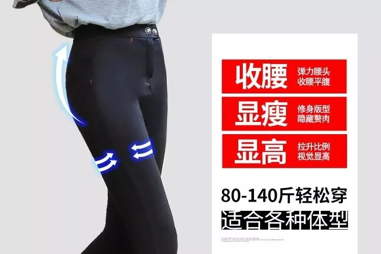 中高腰设计,视觉上增高5cm,还能很好地收腹、遮小肚腩;秋冬穿,还能保暖腰腹及卵巢子宫,防止受寒。