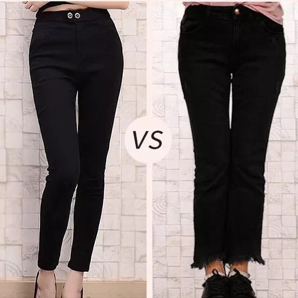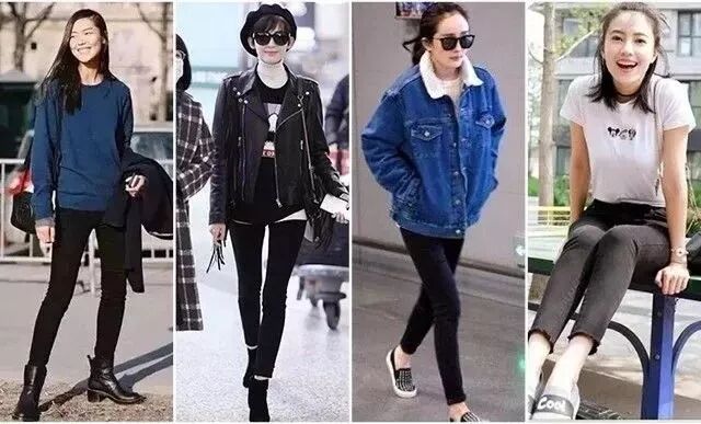 穿牛仔裤和黑色紧身裤,身材是不是立显不同