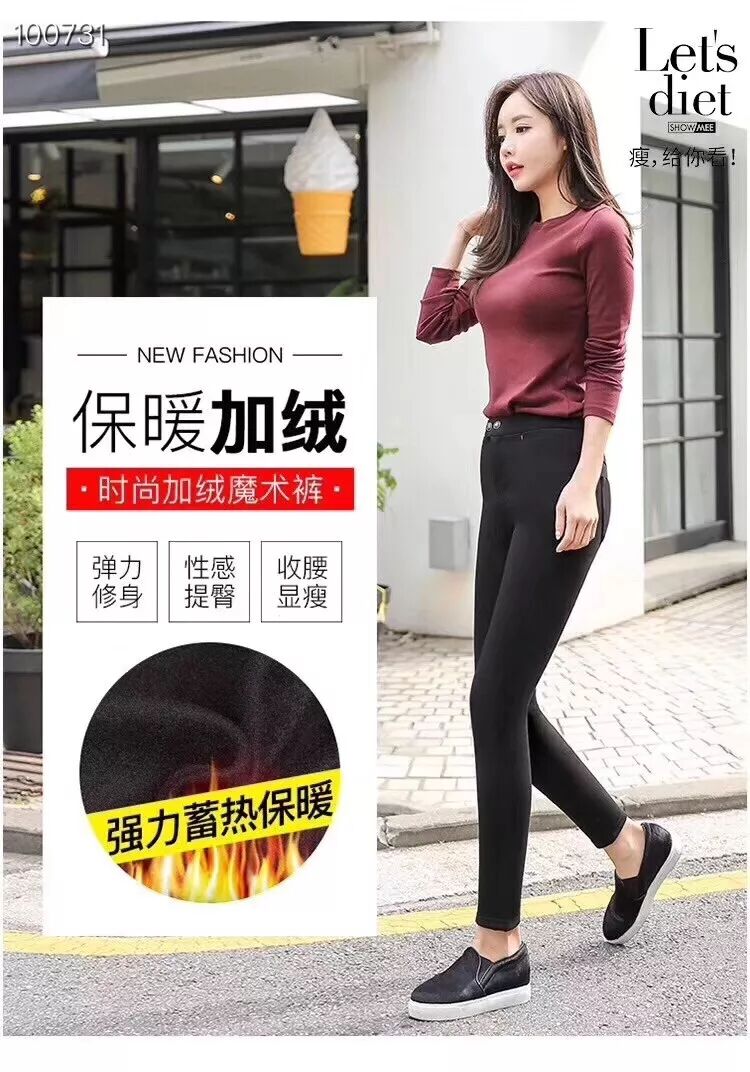 魔术裤有适合日常穿着的薄款以外,还有一款适合寒冷冬天的加绒款。采用新进理念,融入蓄热保暖纤维,360°超强蓄热,面料细绒肌肤间,形成持久保温"暖气带",应对0度寒冷气温也毫无压力。