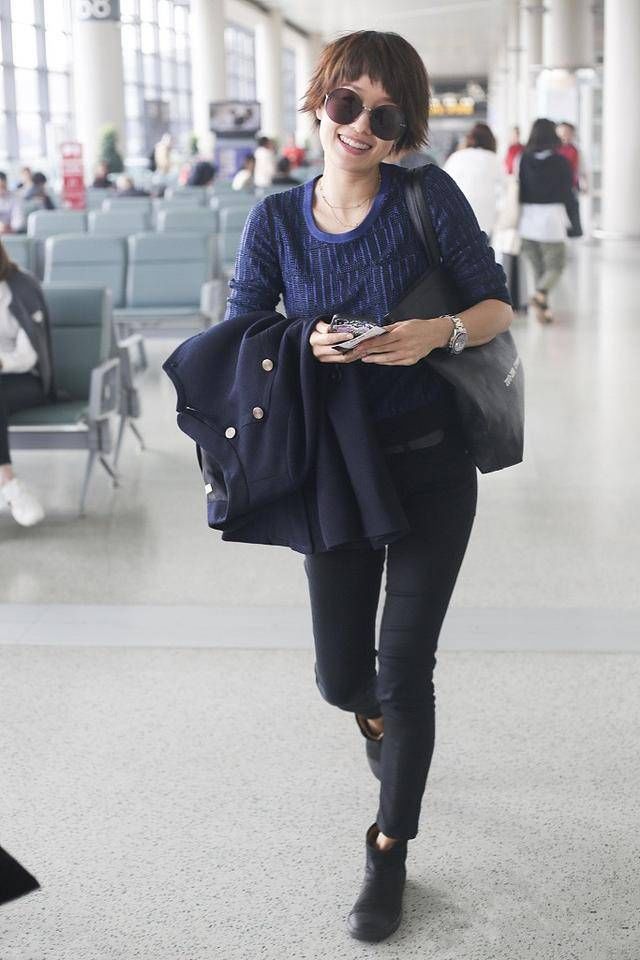 在生活里追求简单质朴的她,也更喜欢穿这种百搭的黑色紧身裤,无论是赶在机场还是和休闲度假,一件随身百搭的小黑裤,简单干练,气质饱满。