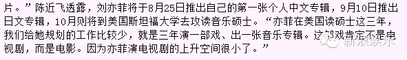 她的团队规划是→美国斯坦福攻读音乐硕士,三年一部戏(电影),一张音乐专辑!