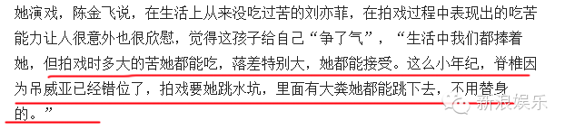 曾经因为长期拍威亚戏而落下脊椎病,有危险的下水戏,大火戏自己亲力亲为!零下几度穿着薄纱泼冷水到结冰,在燃烧的草屋里被吊起来↓