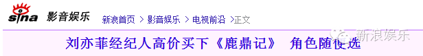 陈金飞曾高价买下《鹿鼎记》的版权,角色随便刘亦菲挑!但后来为了刘亦菲演艺事业的规划放弃出演了!