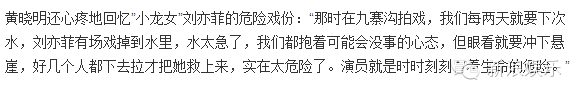 当年拍《神雕》时,剧组在九寨沟取景,刘亦菲失足落入湍急的瀑布中,差点被水流冲走挂掉,好在黄晓明和工作人员救下,才避免事故的发生!