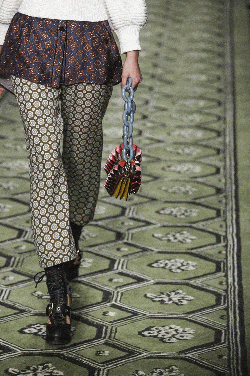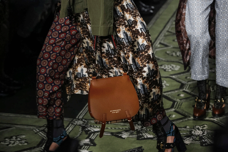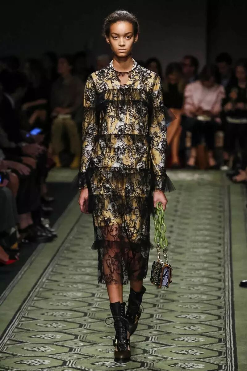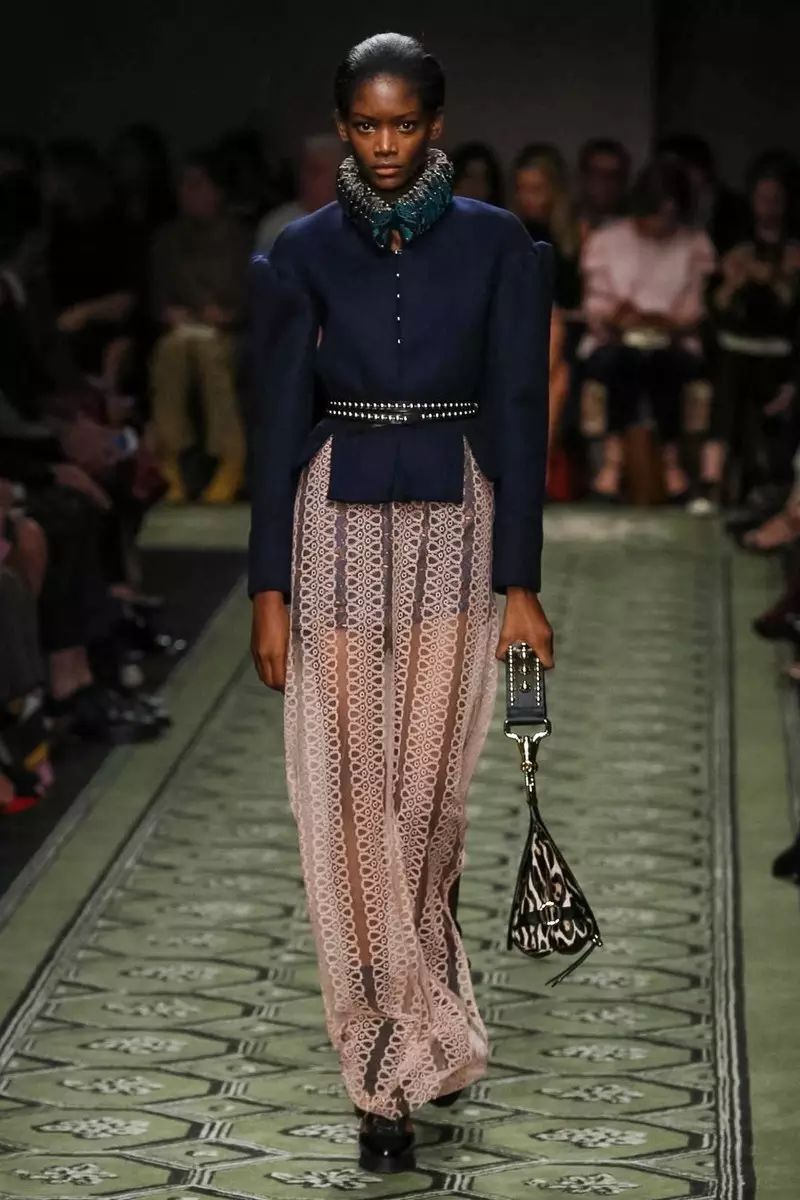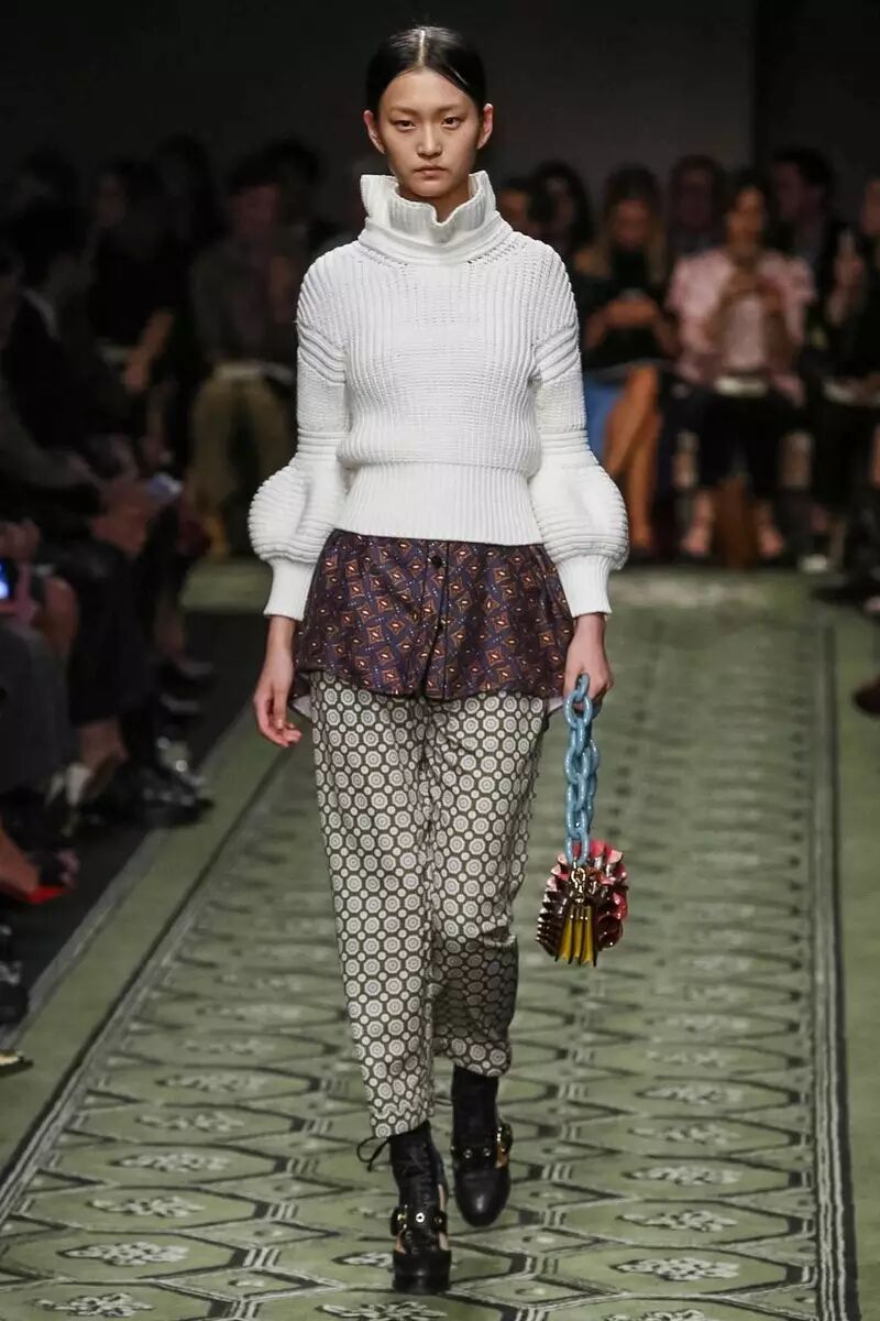绝妙的假小子风贯穿了本季Burberry的秀场,宫廷风、军装风、中性风等元素也亮相其间,尤其体现在外套上。剪羊毛大衣上布满了蟒蛇条纹,卡其色绿野夹克的五金装饰让人想起女王卫队。本季,这些略带阳刚气的时装与充满浪漫情怀的温暖大毛衣相得益彰。