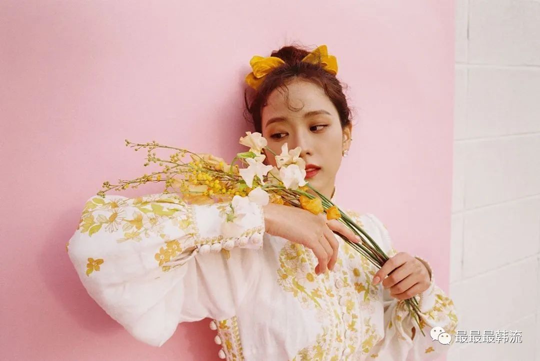 金智秀日前在INS上晒出了拍摄BLACKPINK年历时的花絮照,讲真可乐觉得她真的好适合这样的花仙子造型啊!
