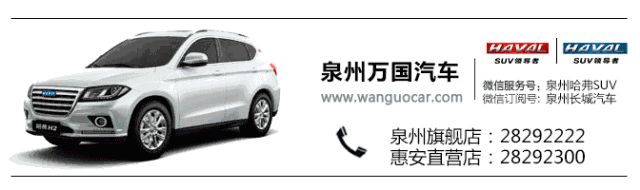 “泉州长城汽车”订阅号将为您带来更多爱车资讯,更多精彩服务体验及抽奖活动敬请关注“泉州哈弗SUV”服务号。