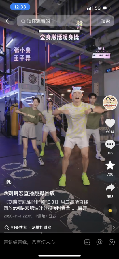 刘畊宏在鸟巢办全民健身嘉年华。来源:受访者