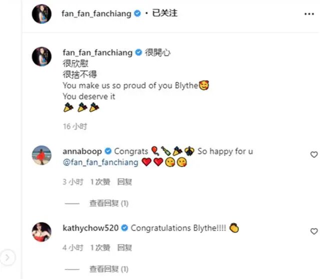 事实上,钟镇涛的妻子范姜昨晚发布了一条消息来庆祝她的女儿。她写着,很开心,很欣慰,很舍不得。上山诗钠、周汶琪等各界朋友看到她的动态后纷纷留言祝贺。