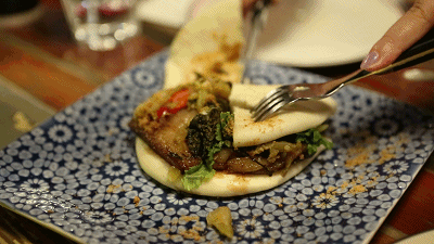 白饼裹满猪肉、酸菜、香菜,要钢镚儿说,这奏似我大陕西的肉夹馍呀~